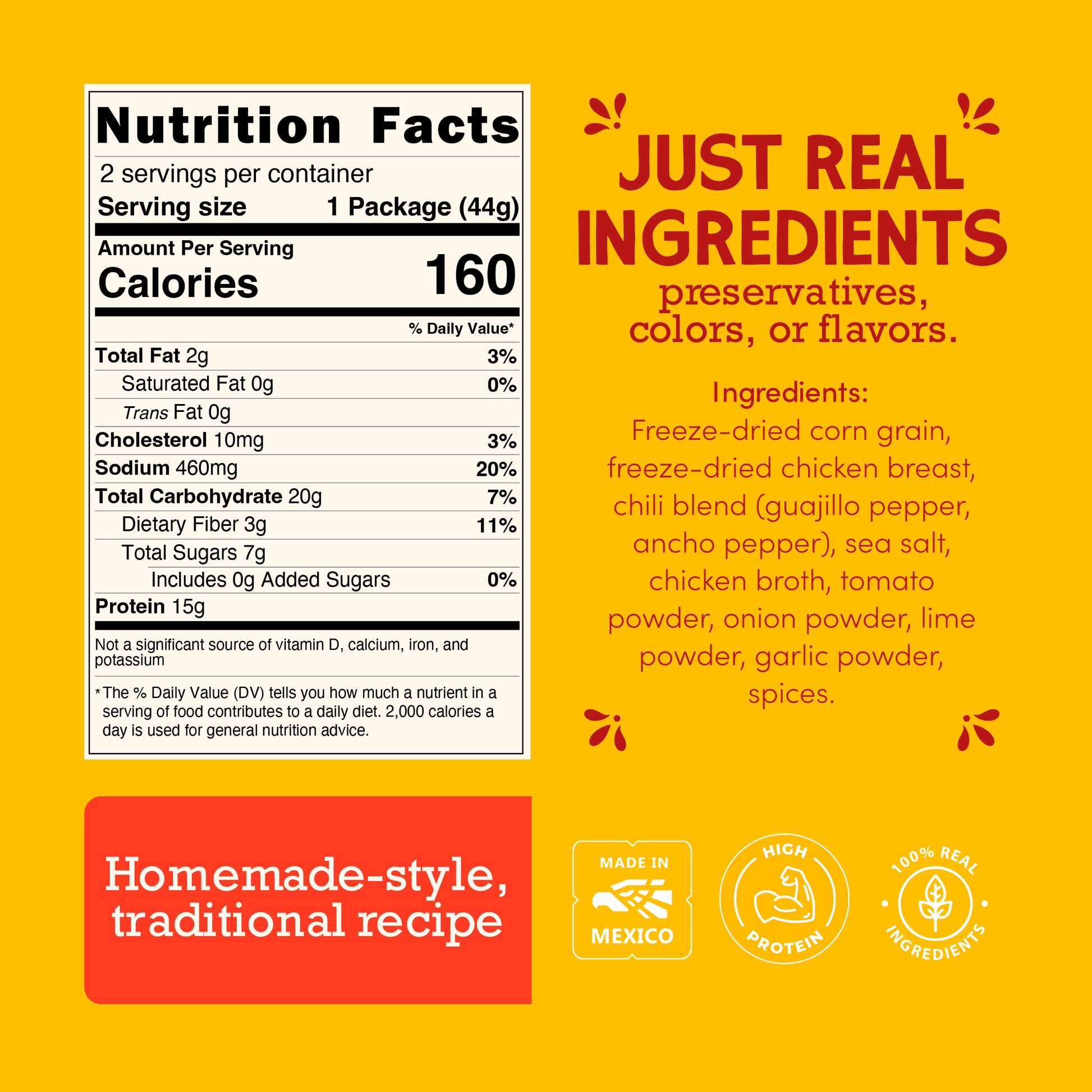 Authentic Mexican comfort food, ready in minutes. Our Chicken Pozole combines real shredded chicken, hearty hominy, and traditional seasonings for bold, satisfying flavor. This shelf-stable Mexican soup brings warm, nourishing flavor bombs with every spoonful — no artificial ingredients, just simple, honest, homemade-style goodness.