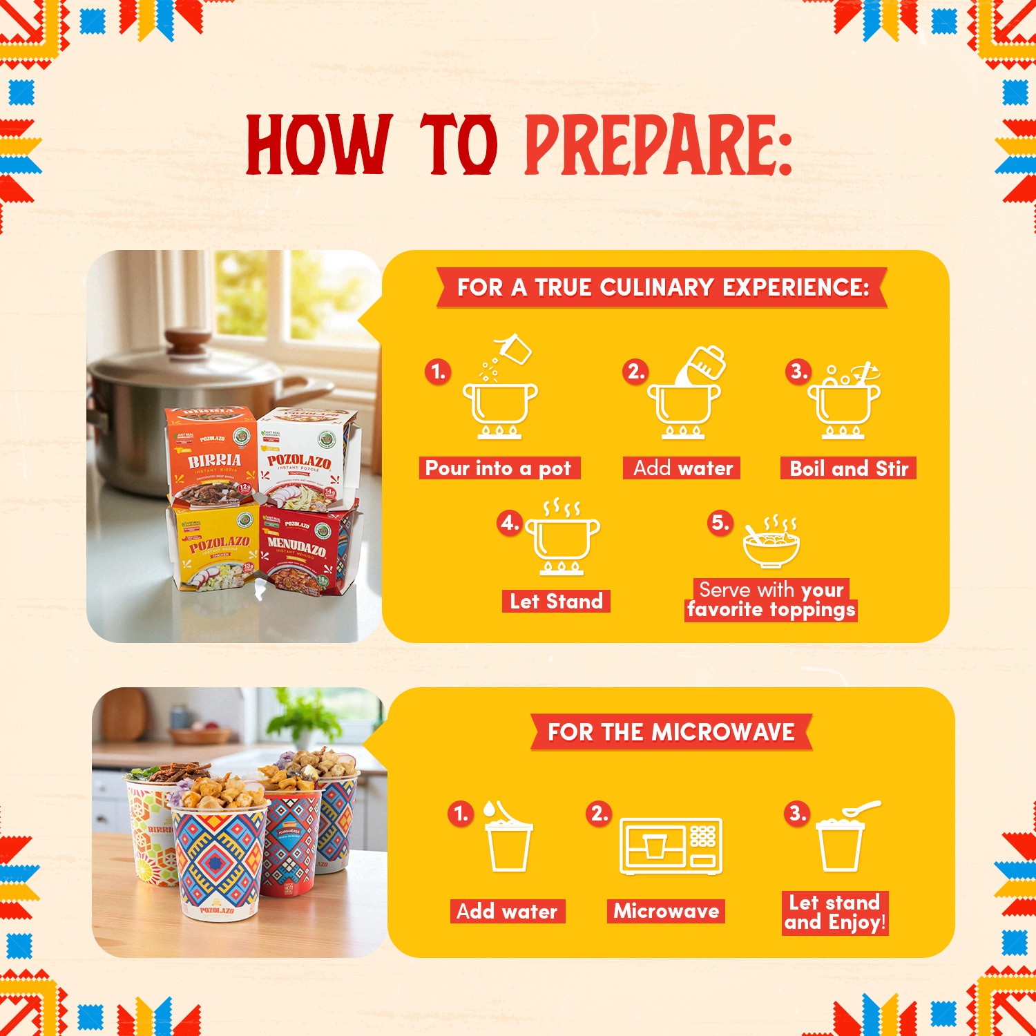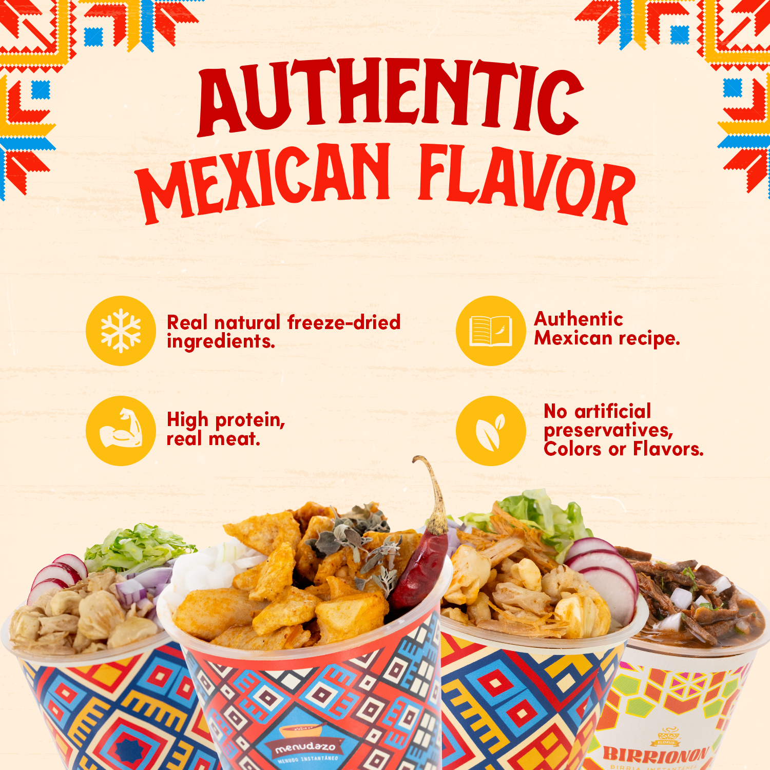 Discover the rich flavors of Mexican cuisine with our Discovery Box, featuring four authentic instant soups: Traditional Pozole, Chicken Pozole, Menudo, and Birria. Each soup is crafted with real ingredients and bold spices, delivering the comforting taste of homemade dishes in just minutes. Whether you crave the hearty hominy of pozole, the rich depth of menudo, or the savory goodness of birria, this selection lets you experience Mexico’s most beloved flavors with convenience and ease.